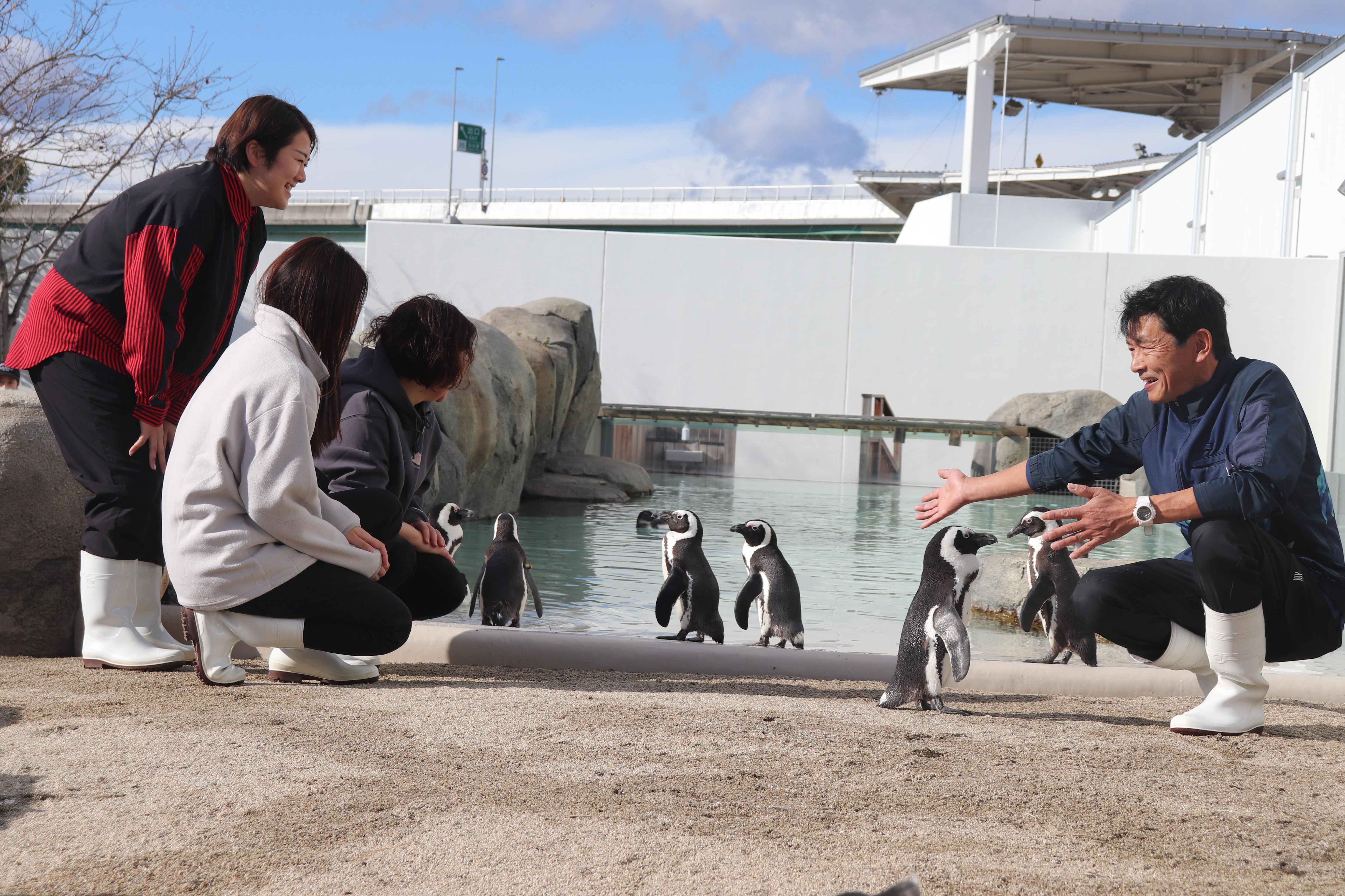 飼育員が「うみの杜ビーチ -PENGUIN LIFE-」の展示場内をご案内するガイドツアー型の体験プログラムです。ケープペンギンの生態や暮らしについて、楽しく学ぶことで、ペンギンたちとの「つながり」をご体感いただけます。ペンギンと一緒に記念撮影もできます。