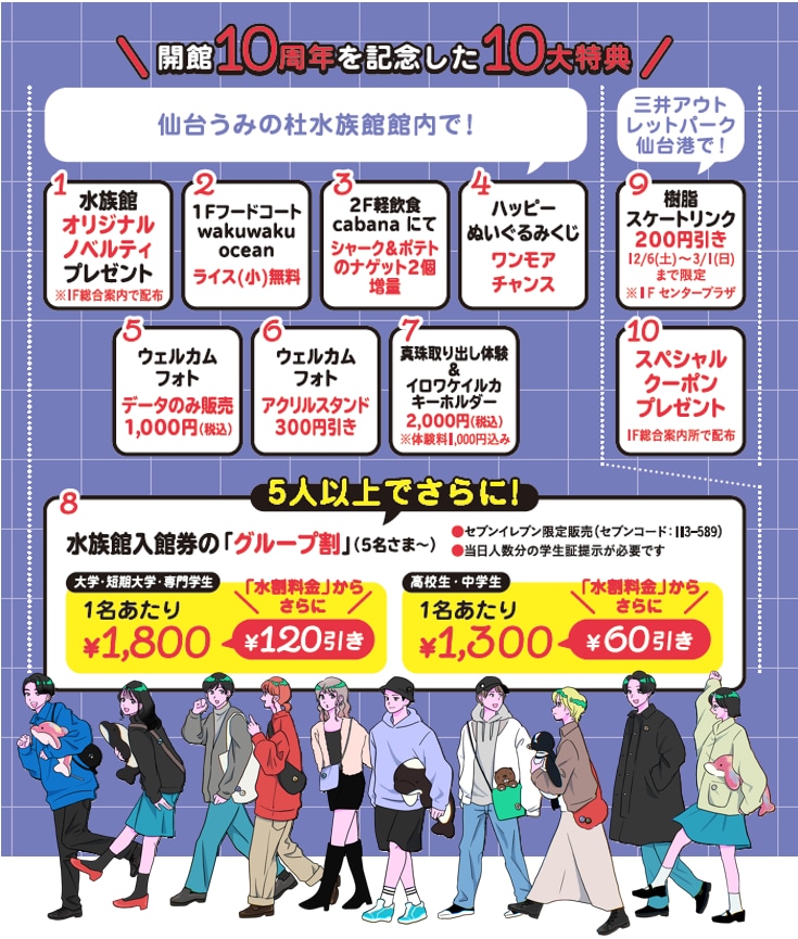 冬休み・春休みや卒業旅行のお出かけに。 おトクに仙台うみの杜水族館が楽しめる学割チケット!